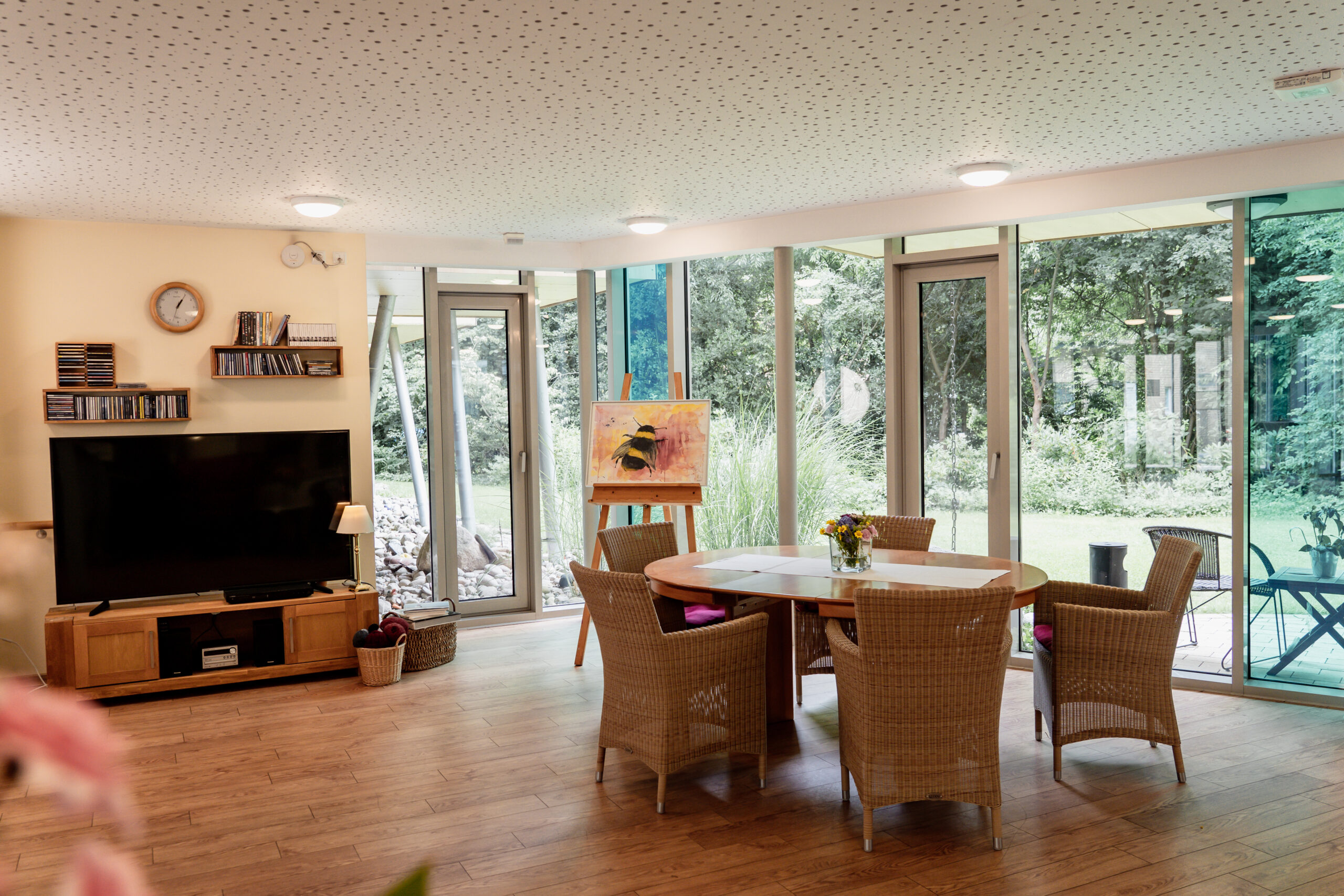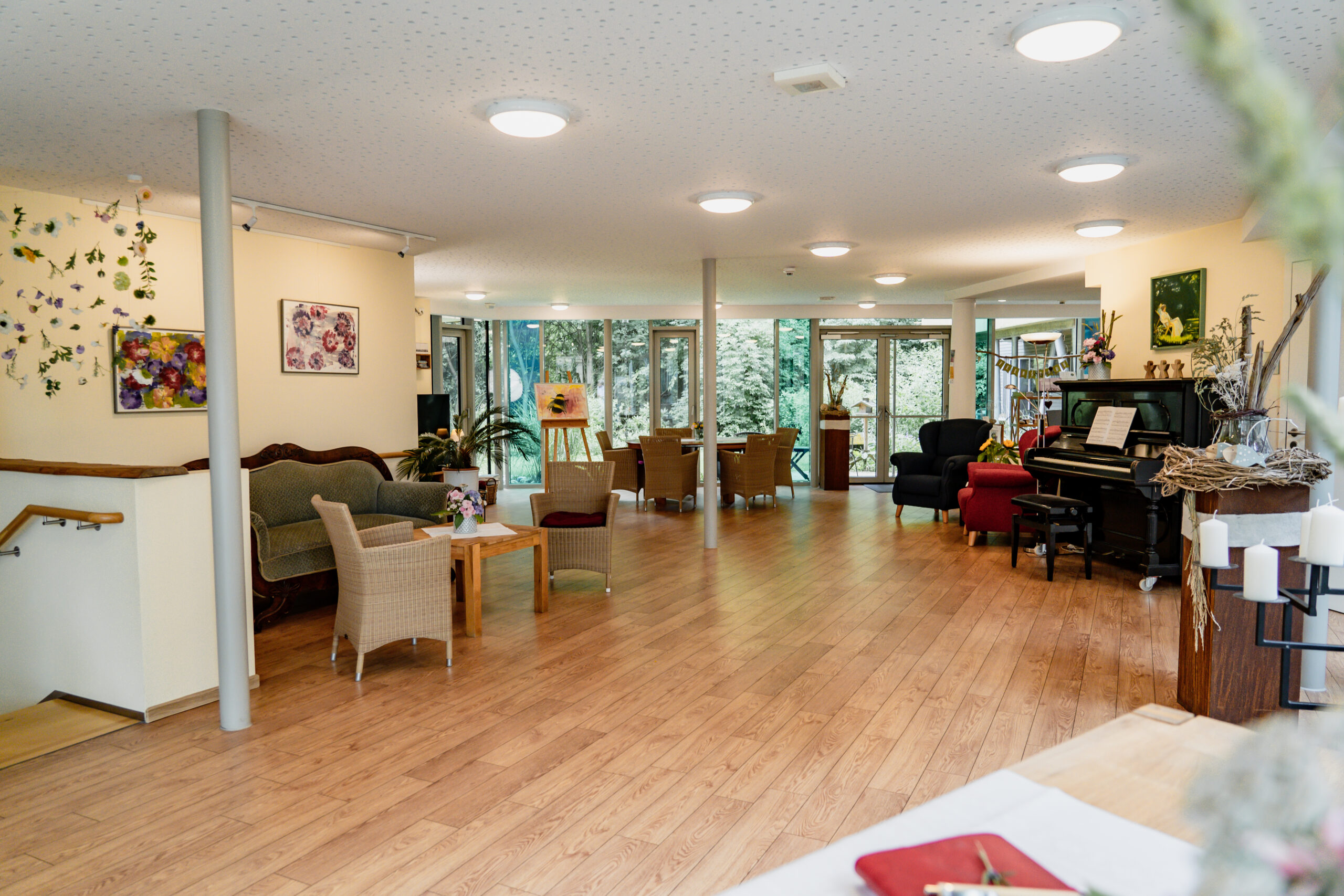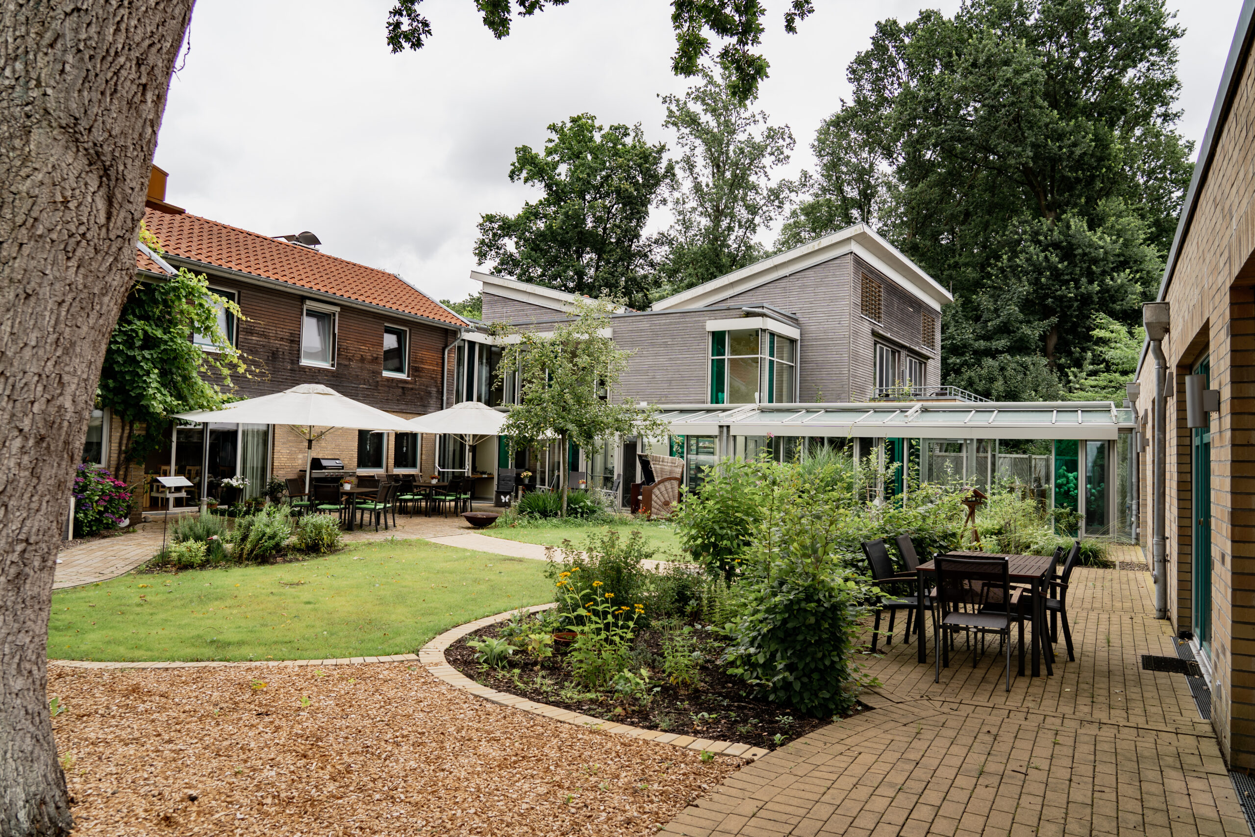 Durch seine Lage im Engeoer Wäldchen erschließt sich dem Gast und seinen Angehörigen der unmittelbare Zugang zur Natur. Ein alter Baumbestand von Eichen, Kiefern und Birken wird im Wechsel der Jahreszeiten erlebbar.